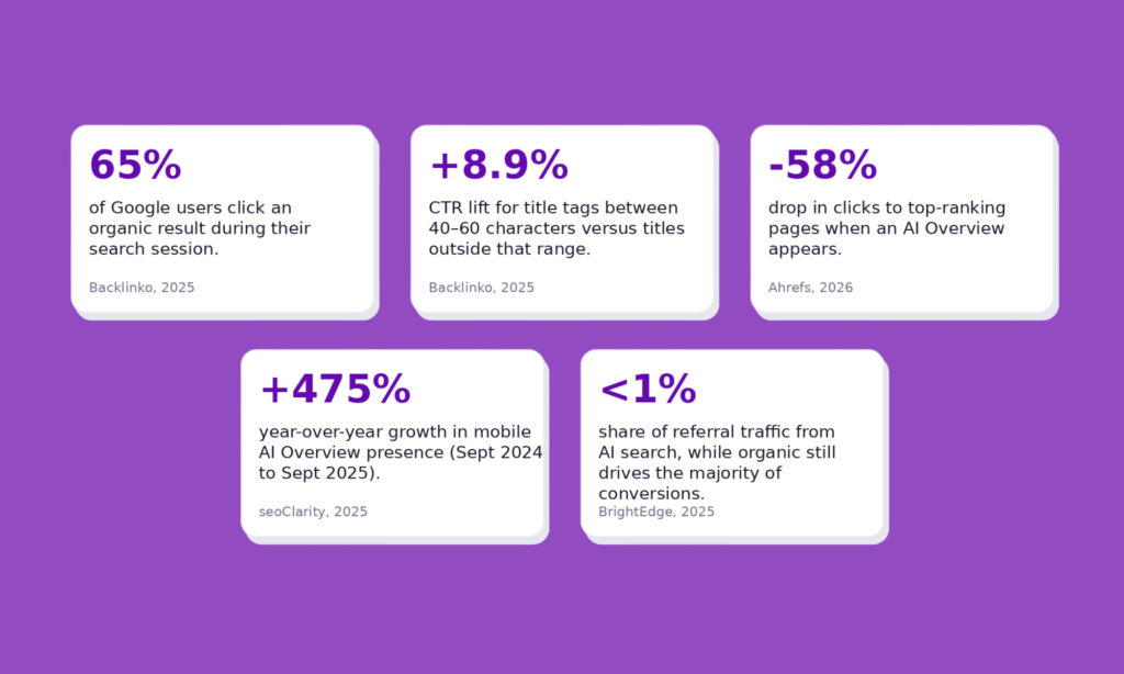 Search is no longer just a list of blue links. It is a blended interface of classic organic results, AI Overviews, featured snippets, forum results, videos, images, product modules, and brand mentions. The sites that win now are not the ones that simply “rank.” They are the ones that are easy to crawl, easy to understand, easy to click, and easy to cite.